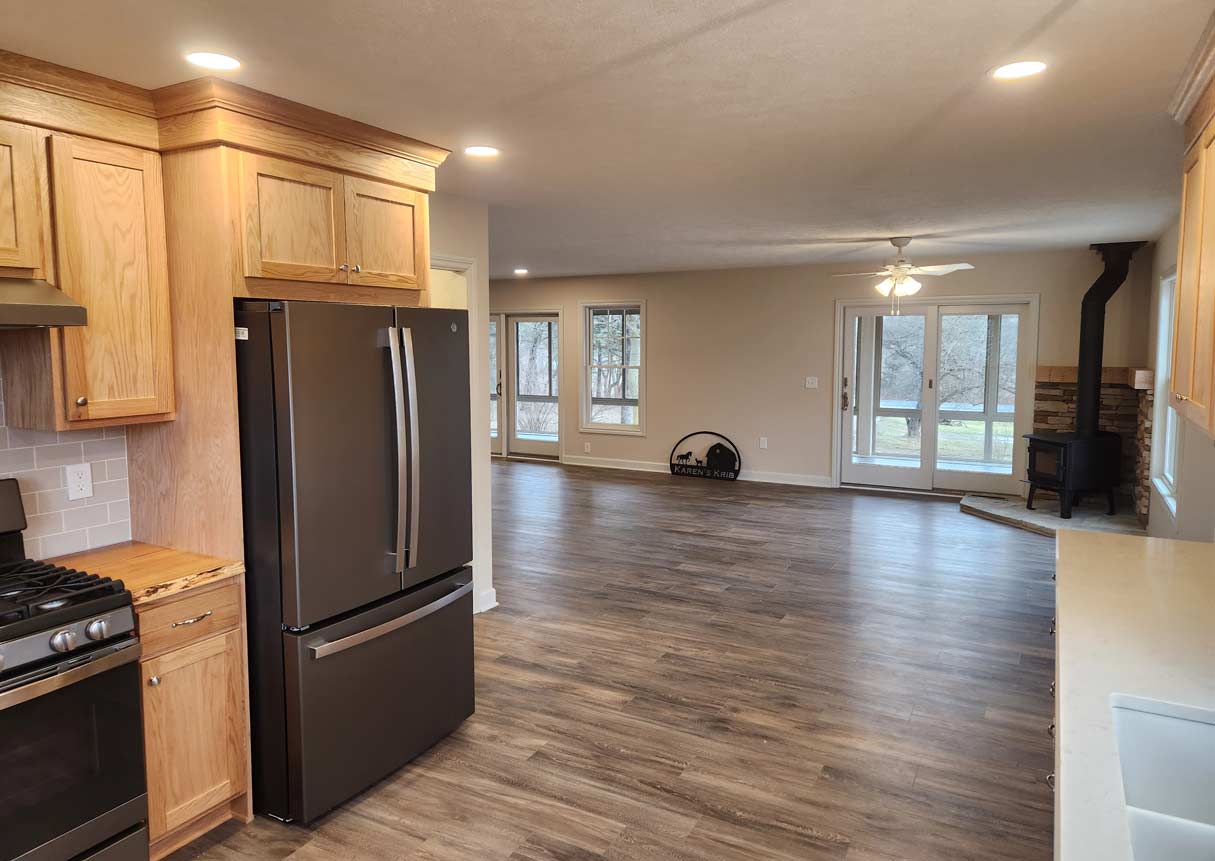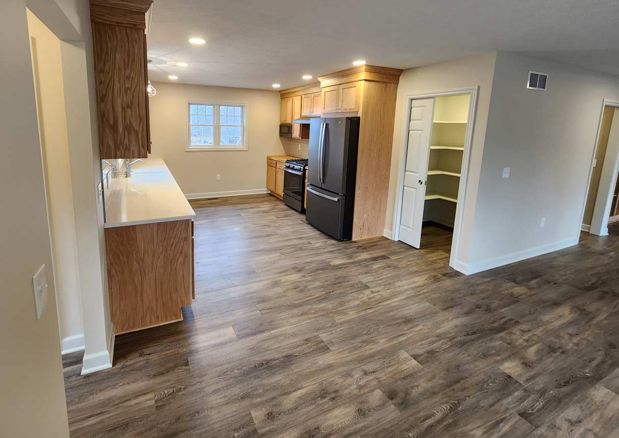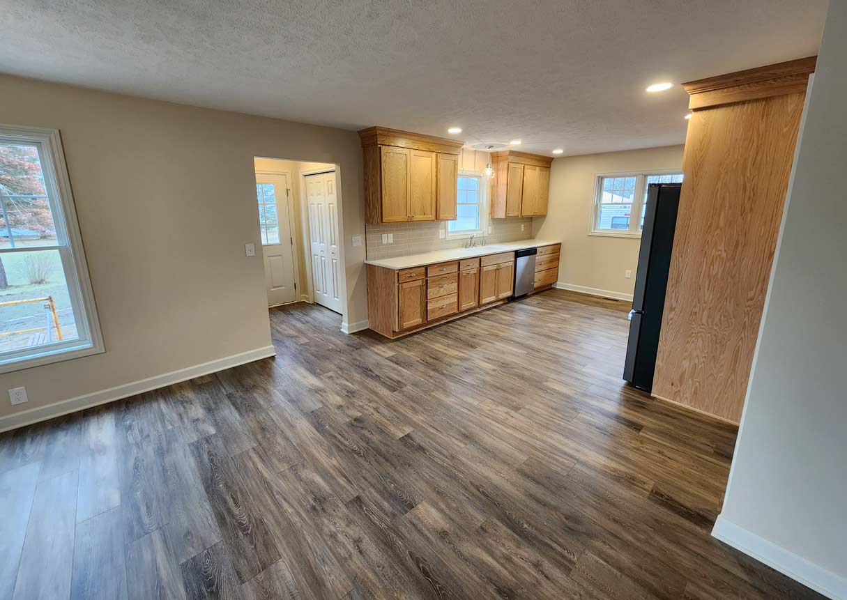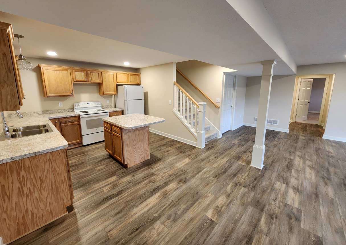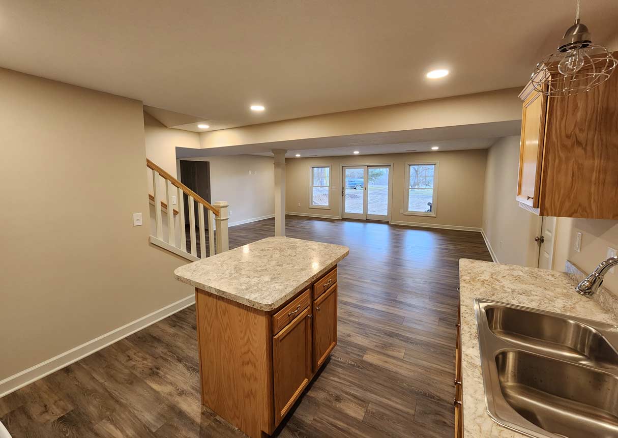 This DeWitt home was built for a recently widowed client who had always dreamed of building a new custom home. Cornerstone helped her design this striking four bedroom, three and a half bath Cape Cod. We tore down the old home in disrepair and immediately started constructing her new dream home. Quality materials such as Andersen windows, Medallion cabinets and CertainTeed siding are throughout, along with custom details like oak built-ins.